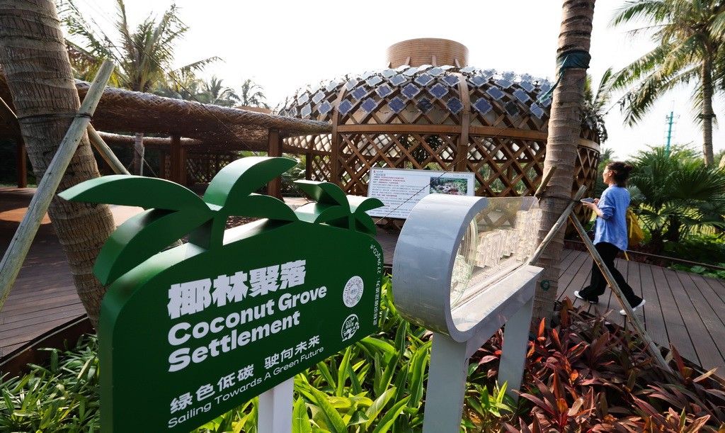 这是3月25日拍摄的博鳌近零碳示范区内的椰林聚落。椰林聚落是园林景观生态化改造的项目之一,应用高性能、环保的竹钢等材料作为骨架,建筑形态可以促进空气流通与降温,顶部覆盖1518块光伏板,收集转化太阳能供给园林照明,降低使用能耗与碳排放。新华社记者 杨冠宇 摄