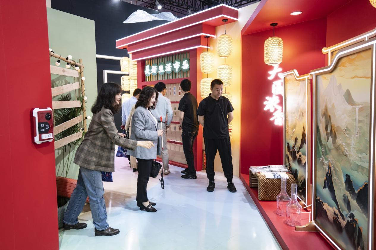 在“美好博物馆”的“多彩幸福图”主题区,观众可踏上一场跨越古今的旅程,通过一条引人入胜的故事线,领略众多国货品牌的魅力。特别是在中国民族品牌代表五粮液展台,观众不仅能深入了解到五粮液精湛的工艺,还能亲身体验古代宴饮文化中的投壶游戏,感受那份逾千年传承的酒文化所带来的独特韵味。