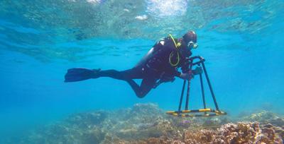 沙特红海旅游项目工作人员在进行珊瑚礁勘测。 |