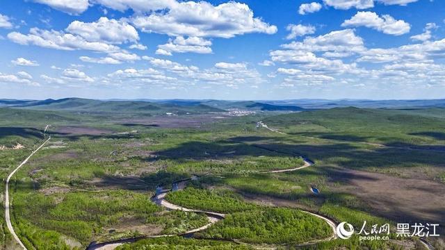 人民网大兴安岭6月10日电 (尚城)从高空俯瞰,黑龙江省大兴安岭林区宛如一幅巨大的绿色画卷,在广袤无垠的龙江大地上徐徐展开。连绵不绝的山脉被森林覆盖,茂密的树木交织成一片绿色的海洋,波涛汹涌,生生不息。
