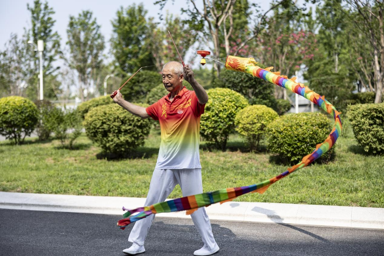 市民在西安奥林匹克体育中心园区中抖空竹。王剑 摄
