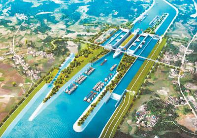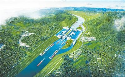 一河通,百业兴。平陆运河建成通航后,将直接开辟广西及西南地区运距最短、最经济、最便捷的通往东盟地区的通道。为减轻长江通航压力,平陆运河远期将与正在研究论证的湘桂运河衔接,纵向贯通长江、珠江及北部湾,更好服务西南、中南地区向南入海直达东盟。