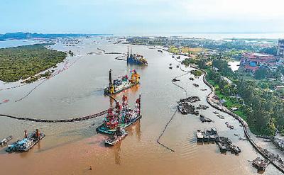 航道15标段处于平陆运河入海口段,起于兰海高速钦江大桥,止于钦州港东航道起点,全长22.02公里。目前,航道15标段已基本完成入海口段航道开挖,现已进入城区段航道开挖施工,计划2025年12月完成;2026年5月完成交工验收。