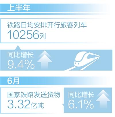 看客运,上半年,全国铁路日均安排开行旅客列车10256列,同比增加882列、增长9.4%。