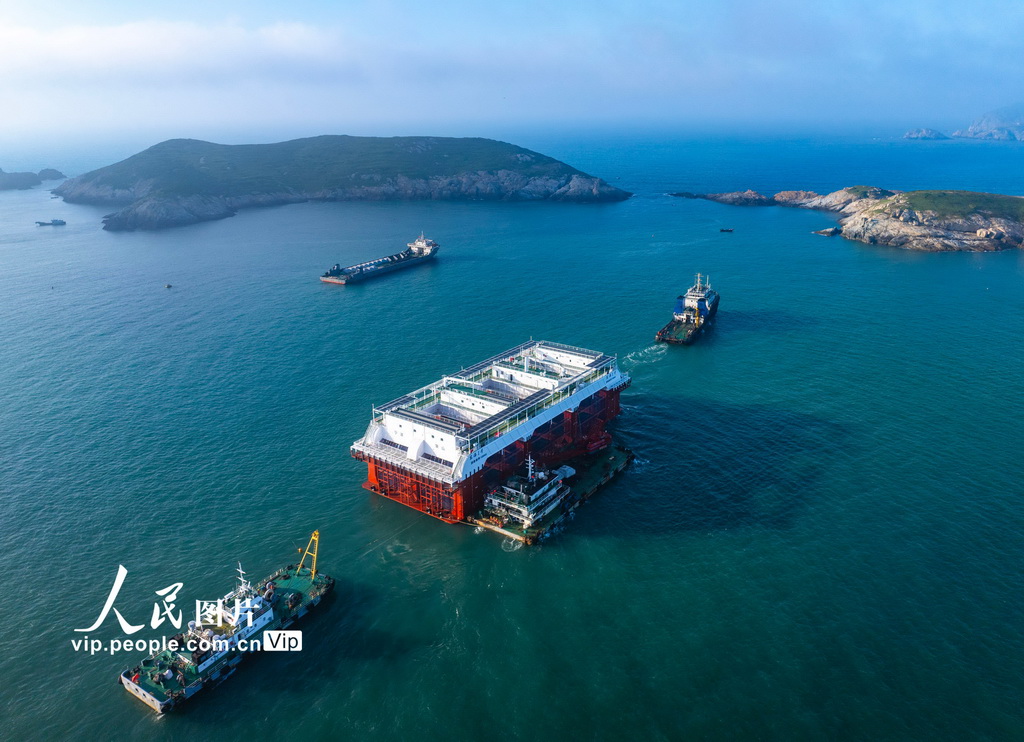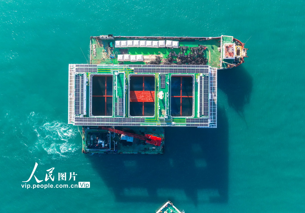 该座移动式“蓝色粮仓”顺利“到岗”,是象山藏粮于海、向“新”而行的生动实践。近年来,该县充分发挥新质生产力的引领作用,从内湾向深海迈进,建设海洋牧场,培强拉长种苗选育、深海养殖、精深加工全产业链条,提升海洋科技驱动力,实现海产品养殖的产量和质量共同提升,不断满足消费者对海洋美食的需求。胡学军摄(人民图片网)