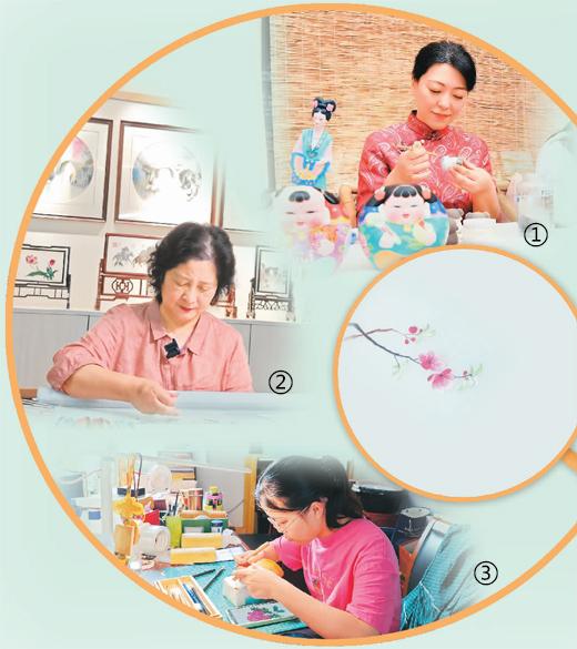 图①:惠山泥人厂高级工艺美术师周璐正在创作泥人彩绘。 |