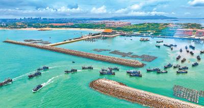 图为渔船驶出平潭综合实验区东澳中心渔港码头。 |