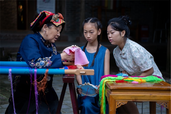 近日,2024“光影中国”影像采风行团队来到四川成都华珍藏羌文化博物馆。在这里,杨华珍指导学生练习刺绣,在布帛上一针一线勾勒出一幅幅生动画卷。