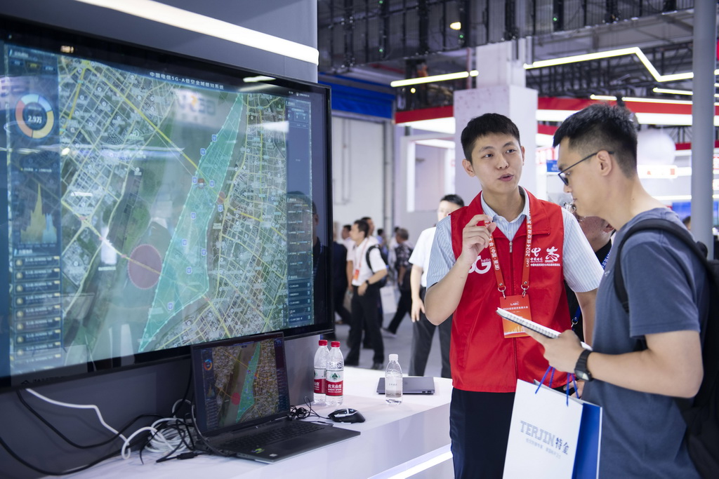 9月6日,观众在2024低空经济发展大会创新成果展区了解可用于城市空域管理的数智低空大脑产品。 新华社记者 傅天 摄
