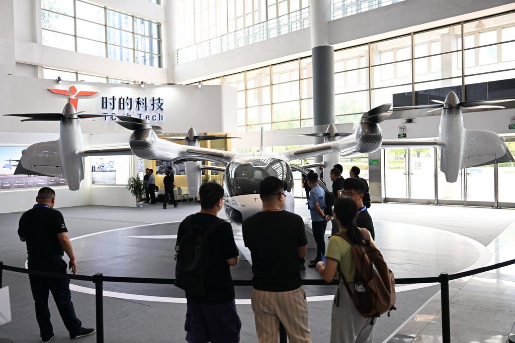 9月6日,观众在2024低空经济发展大会创新成果展区了解一款电动垂直起降飞行器。 新华社记者 黄博涵 摄