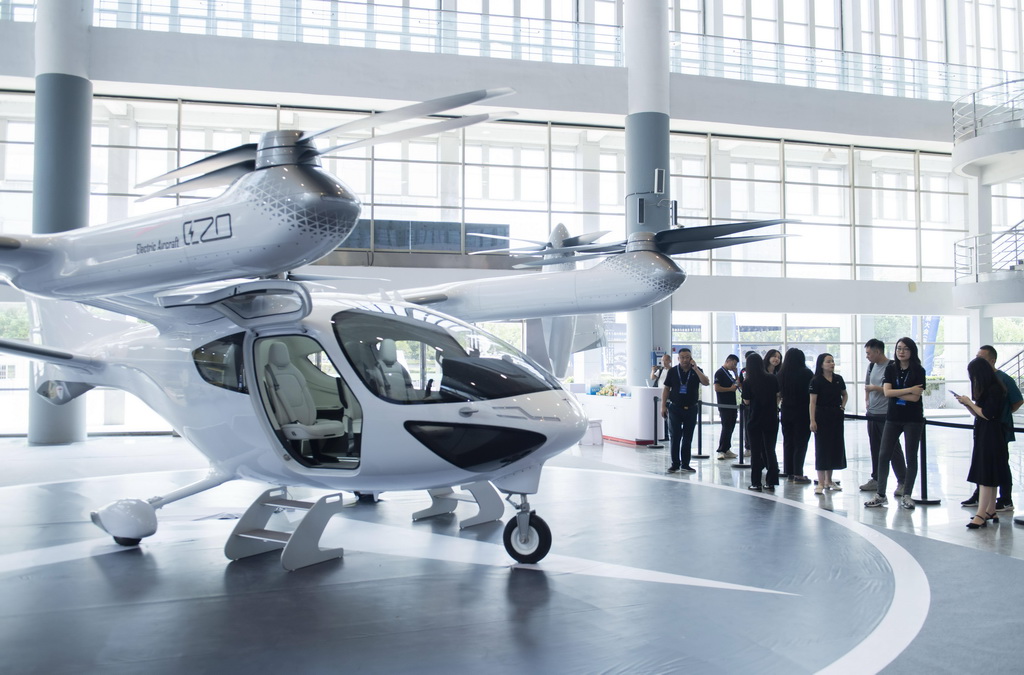 9月6日,观众在2024低空经济发展大会创新成果展区了解一款电动垂直起降飞行器。 新华社记者 傅天 摄