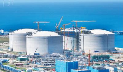 江苏省液化天然气储运调峰工程是该省自主投资建设的第一个接收站项目,项目规划建设4座20万立方米液化天然气储罐及配套设施设备和1座8至26.6万立方米液化天然气专用码头,计划于2025年完工。图为该工程正在建设中。