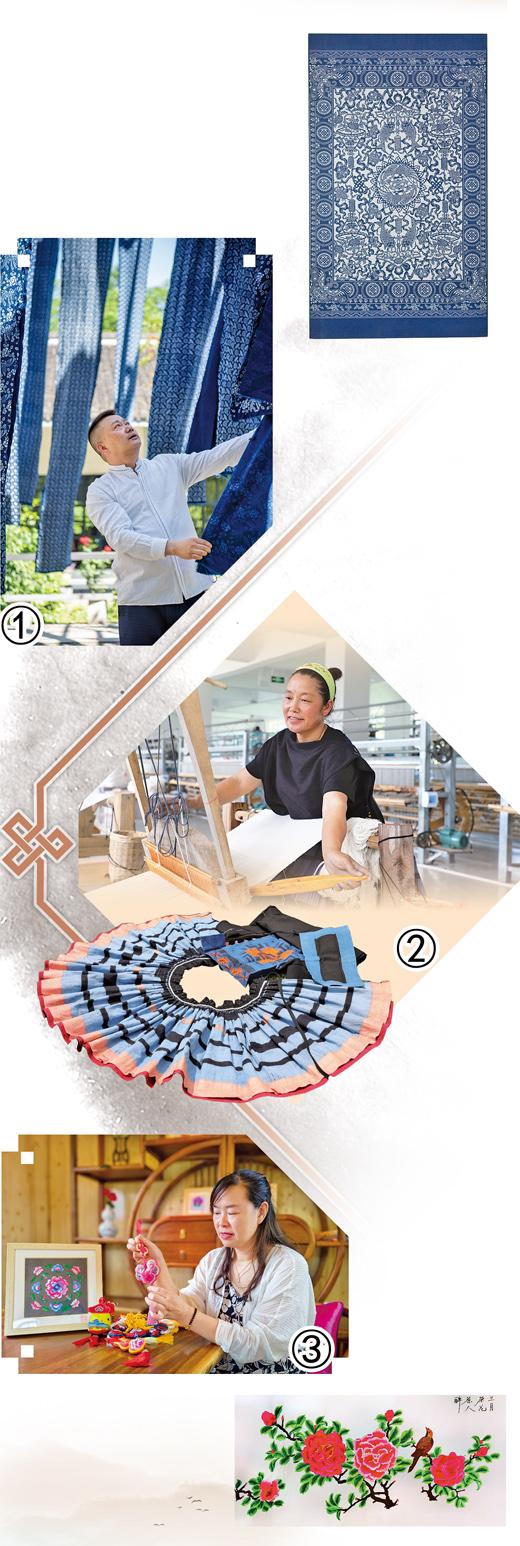 养缸刮浆,染出精美的蓝印花布;浸染缝制,绣出独特的民族服饰;轻挑慢捻,织出绣娘的美好生活……一件件植根于广阔田野的纺织作品,与历史回响、与时代交融,不仅承载着精湛技艺,更彰显着文化传承。
