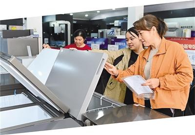 湖南省邵阳市洞口县高沙镇一家家电商场内,消费者在选购产品。 |