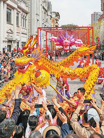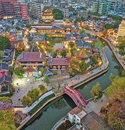 古老街区更加青春。引入“三雕一彩一绣”及粤剧粤曲等非遗文化工艺品、广州老字号及时尚餐饮、岭南特色风情民宿等新兴业态,举办展览、灯会、城市音乐会等文化活动,让老建筑、老商铺更显青春活力。