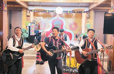 在云南省澜沧拉祜族自治县,拉祜族房东扎努的民宿在国庆节假期迎来满房。今年4月,扎努改造自家老房子,把民族音乐与民宿相结合,开了一家音乐民宿——拉祜音宿。“拉祜族是能歌善舞的民族。我喜欢与人交流,喜欢乡村风光和家乡气候,所以选择回乡开民宿。”作为房东,扎努常常带游客一起唱歌跳舞,表演他创作的《我在澜沧等你》《快乐拉祜》等歌曲,并向他们介绍拉祜族的民族历史和文化。