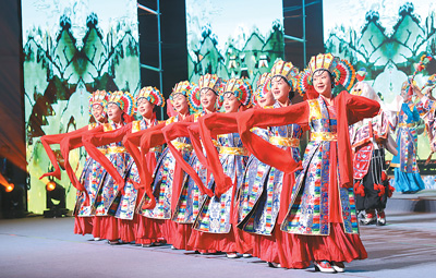 2024冬游西藏启动仪式上的藏族舞蹈表演。
