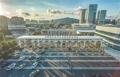 在澳门乘坐轻轨“氹仔线”,在莲花站换乘,列车刚启动,广播就开始播报:“下一站——横琴站!”两分钟后,列车便稳稳停在横琴口岸澳门口岸区……