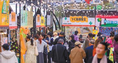 横琴励骏庞都广场上,特色文化集市吸引游客驻足。
