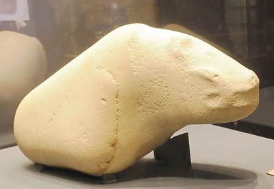此次展览以多媒体形式介绍了这座“王者之墓”的形制和随葬品,并展示了墓中出土的重要文物。玉石猪是目前国内考古发现的同时代最大、最重的玉雕作品。猪拱部凸出,其上有两个鼻孔,嘴两侧刻上弯的獠牙,应为野猪形态。眼和竖耳用减地法表现,颈部宽而浅,腹部一侧刻两条弯曲的线,象征蜷曲的双腿。这件大玉猪发现于墓口上方而不是墓底,可能有某种指示或镇墓功能。