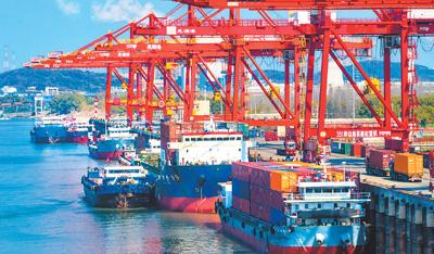 今年,跨境金融服务平台升级并在全国推广银企融资对接应用场景,为更多涉外中小微企业融资提供支持,助力各地对外贸易质升量稳。图为12月19日,安徽省芜湖港朱家桥港区国际集装箱码头上,船舶停靠在泊位进行装卸作业。