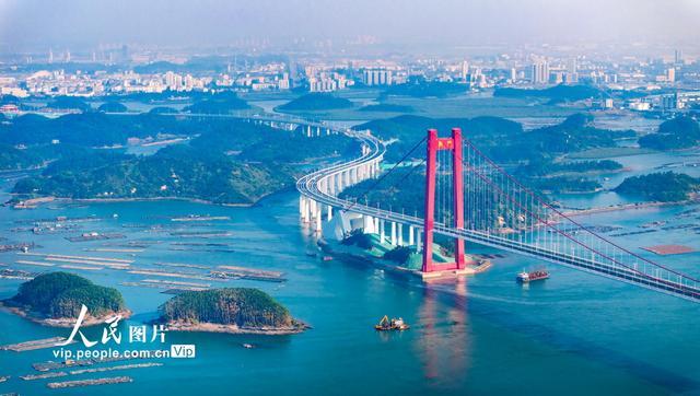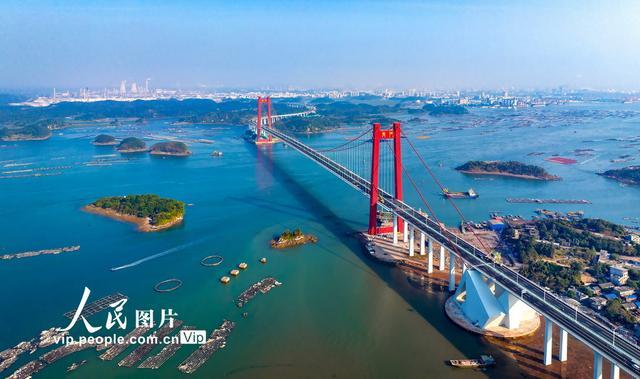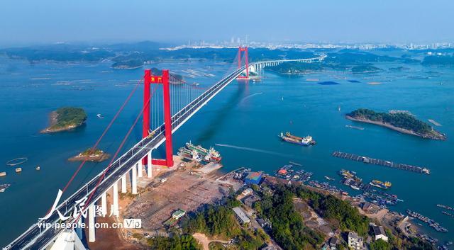广西龙门大桥起点位于广西钦州市钦南区龙门港镇水厂附近,跨越茅尾海,终点接钦州港区金鼓大道,全长7756米,是连接防城港港区和钦州港区最便捷的一条通道,大桥建成通车后,将极大助力北钦防一体化发展和西部陆海新通道建设。曾祥忠摄(人民图片网)