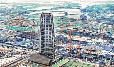 日前,河北雄安国贸中心建设工地一派繁忙景象。