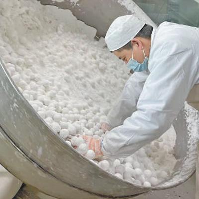 “一颗元宵要经过浸泡、淘洗、晾米、磨粉、制馅、切馅、滚制等十几道工序,才能达到好煮易熟、皮松馅软、黏韧适宜等要求。”邱云贺说,制作过程中的许多“门道”,构成了市民心中的“地道”。锦芳小吃店采用自主研发的传统石碾磨粉,米粉要过3遍箩,保证细腻口感。滚制也大有讲究。晾干的元宵馅迅速过水后,再捞到元宵机中滚制,其间需要用手持续翻动,然后投入水中,如此重复4遍,所谓“四水成形”。