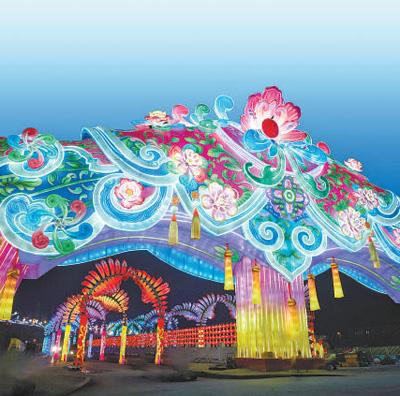 四川第三十一届自贡国际恐龙灯会现场的“自贡戏装”灯组。