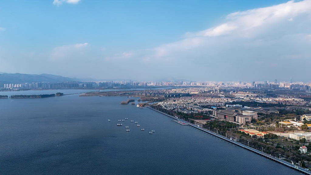 近日,记者从昆明市滇池管理局获悉,滇池2024年全湖水质持续向好,已连续七年保持全湖水质Ⅳ类。近年来,云南省昆明市通过采取控源截污、精准防控、科学补水、生态增绿、科技支撑等措施,推动滇池保护治理取得积极成效。新华社发(彭奕凯 摄)