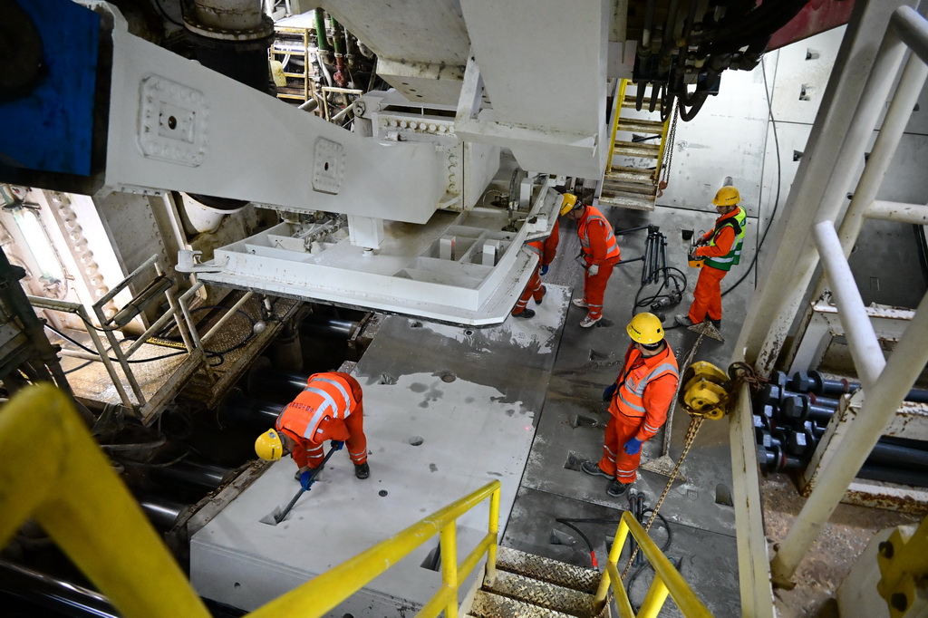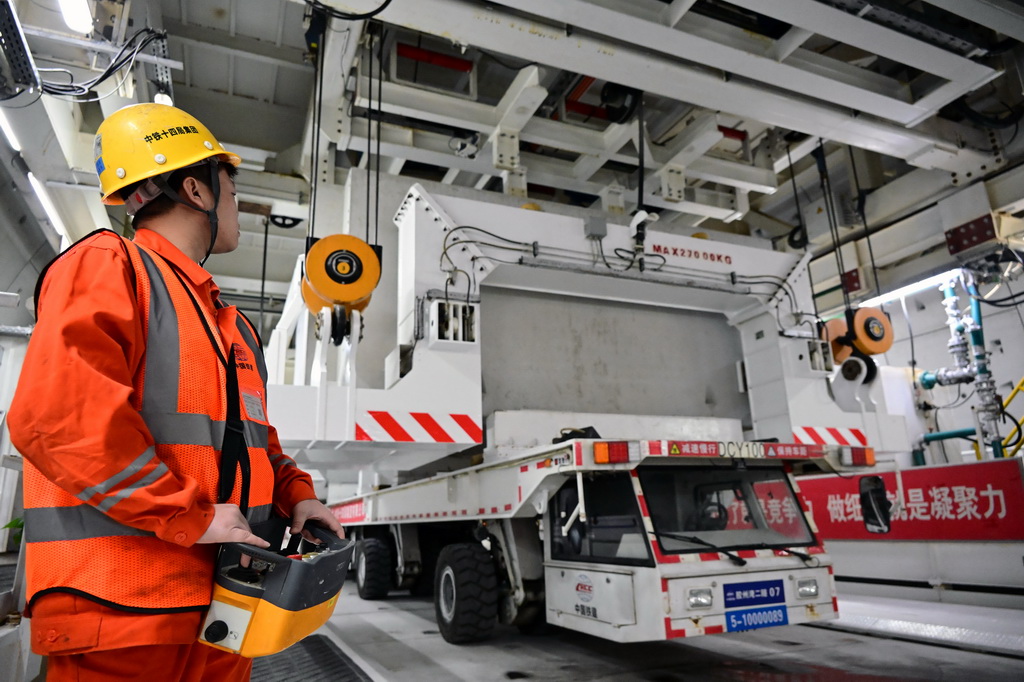 节后复工以来,青岛胶州湾第二隧道工程按下“快进键”。各参建单位严格落实安全生产要求,科学管控施工进度,克服地质条件复杂等不利因素,成功穿越多条海底破碎带,为实现一季度“开门红”奠定坚实基础。新华社记者 李紫恒 摄