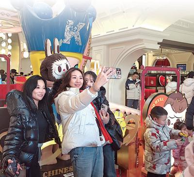 这些年,泡泡玛特与国内外艺术家合作,设计打造了众多国漫IP形象,并以此开发出潮玩手办、搪胶毛绒等多品类产品。它们是消费产品,也是消费场景:步入位于北京朝阳公园的泡泡玛特城市乐园,市面上的爆款潮玩手办,一下子“动了起来”,与游客开启互动表演、情景游戏。这个占地4万平方米的城市乐园,春节期间,每天接待游客人数都接近最大限流量。