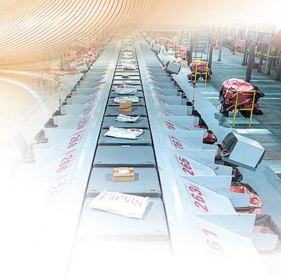 京东物流亚洲一号北京智能产业园内,自动分拣机快速分拣包裹。