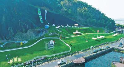 图为浙江省诸暨市枫桥镇杜黄新村“躺鹿牧场”露营基地。