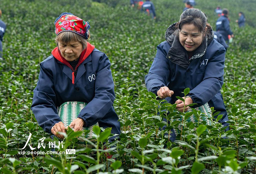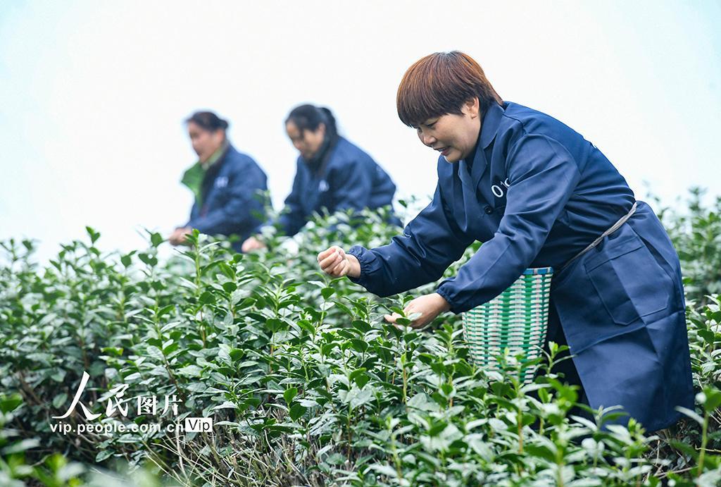 2025年3月5日,浙江省金华市的叶常香有机茶园,正式开启春茶采摘工作。时宽兵摄(人民图片网)