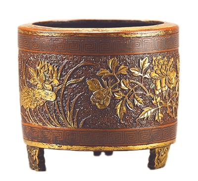 明代胡光宇花卉纹铜炉(上海博物馆藏)。