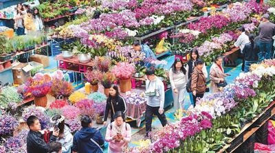 云南省昆明市呈贡区斗南花卉市场内人潮涌动,前来选购鲜花的市民游客络绎不绝。