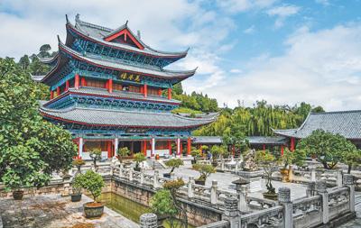 “一座土司府,半部民族史”。木府万卷楼前的这10个字,将边地古城各民族交往交流交融的故事娓娓道来。狮子山拱卫、护城河萦绕,木府的选址与布局十分讲究。作为丽江木氏土司府的衙署,木府始建于明代,后来历经多次扩建和修缮,形成了现有的建筑群布局,议事厅、万卷楼、护法殿等沿中轴线依次排开。历经400多年风雨的木府,作为丽江古城中的重要文化地标,聆听着各民族百川汇流向前的历史回响。