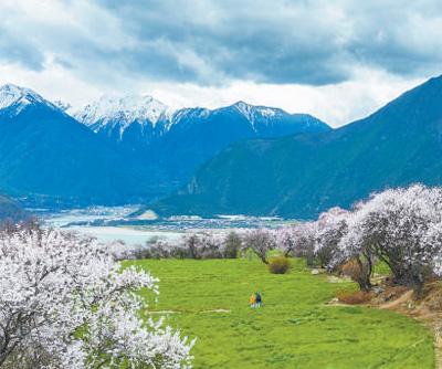 4月4日,西藏自治区林芝市米林市索松村的桃花景色。