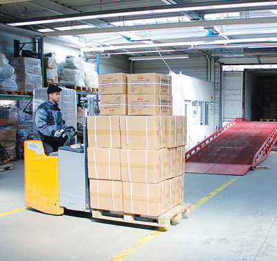 东方超市是德国规模最大的亚洲连锁超市之一,不仅在自营超市中销售多种中国农食产品,同时向德国销售商和餐饮企业供货。图为在位于德国勃兰登堡州的东方超市货运中心,工作人员在接收刚刚运抵的货物。