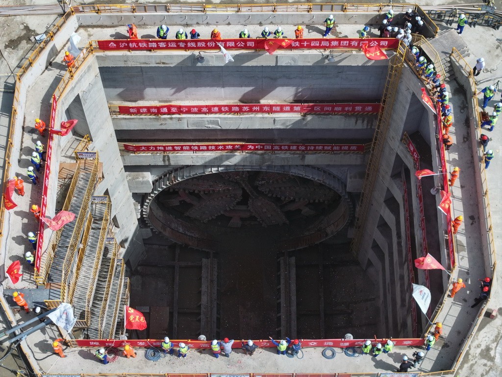 苏州东隧道是通甬高铁控制性工程之一,全长15.57公里。通甬高铁是我国“八纵八横”高铁网沿海通道的重要组成部分,建成后将进一步完善长三角地区铁路网结构,推动长三角高质量一体化发展。新华社记者 季春鹏 摄