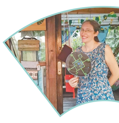 去年带相关设计作品到消博会参展,今年做黎锦展示的“搭桥人”,美国设计师谢敏对黎锦情有独钟。逛完展会,她回到自己位于海口海甸岛白沙门公园的小店里。“黎锦上抽象的图腾提供了更多创作和解读的空间,这些图腾不仅可以‘织’,还可以‘画’。”谢敏说,近年来自己几乎走遍整个海南岛,到访过很多少数民族聚居的村庄。在结交许多“织锦老师”、学习黎锦纺染织绣的制作技艺后,她逐渐有了自己设计手工艺品的想法。
