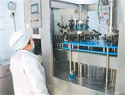 工作人员查看蔓越莓啤酒制作情况。