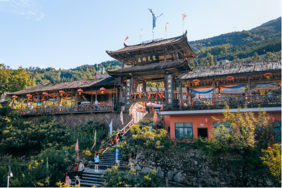 这里是北川羌族自治县曲山镇石椅村(又名石椅羌寨),因有天然形成的巨大石椅而得名。寨中生活着汉族、羌族、藏族三个民族,羌族人口约占60%,是羌族文化展示与传承的重要窗口。