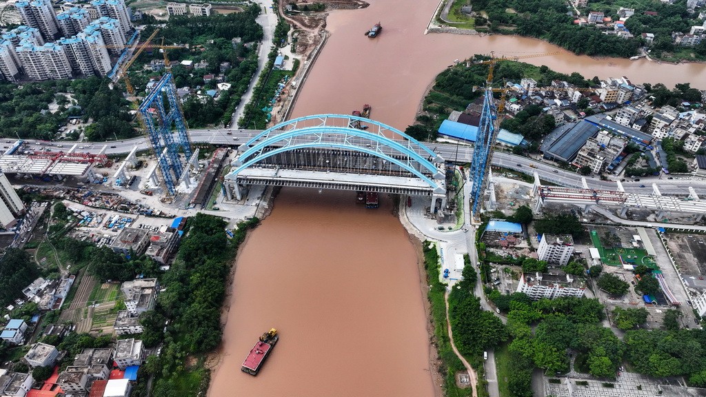 这是建设中的钦州市子材大桥(8月24日摄,无人机照片)。
