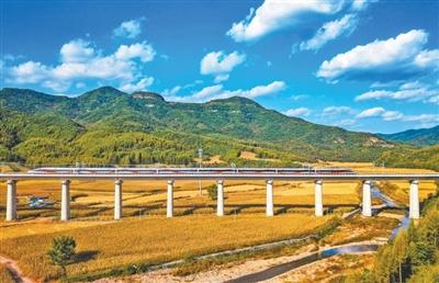 9月28日,列车行驶在沈佳高铁沈白段上。