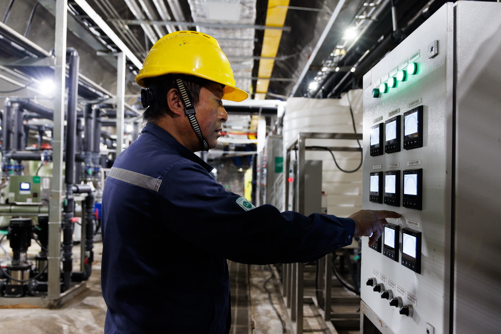 11月18日,工作人员在纯水间监测超纯水处理情况。