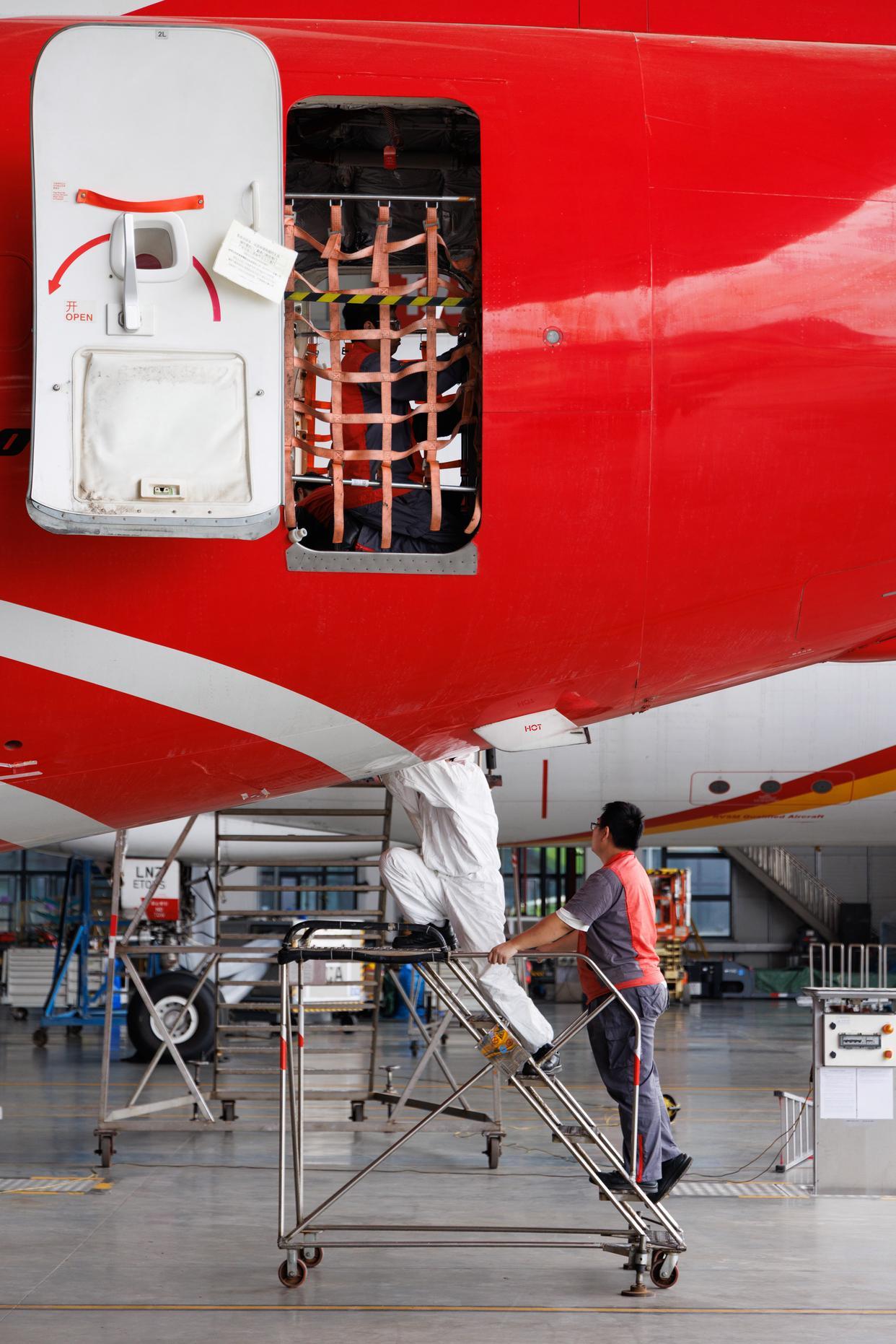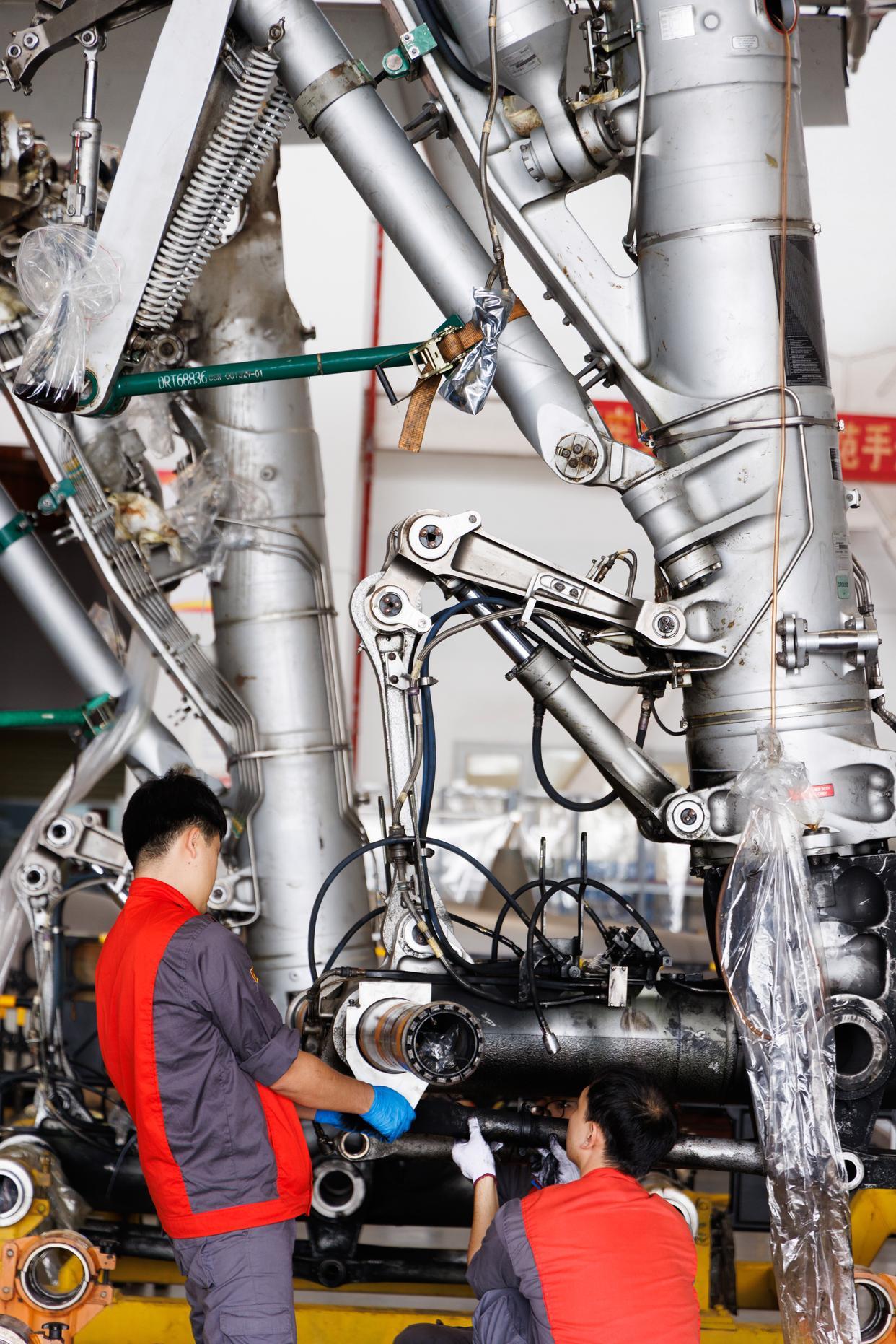 12月9日,工作人员在海南自贸港一站式飞机维修产业基地维修飞机。新华社记者 金立旺 摄