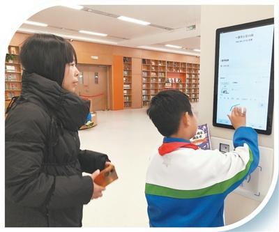 雄安图书馆内,小学生通过智能书柜检索图书。