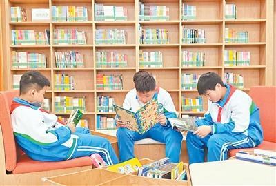 雄安新区北沙小学学生在图书馆内阅读。